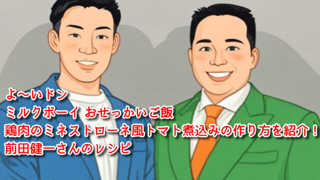 よ〜いドンミルクボーイ おせっかいご飯で鶏肉のミネストローネ風トマト煮込みの作り方を紹介!前田健一さんのレシピ