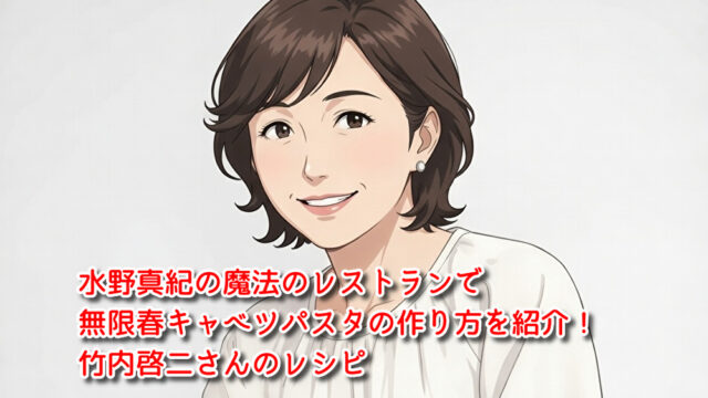 水野真紀の魔法のレストランで無限春キャベツパスタの作り方を紹介!竹内啓二さんのレシピ