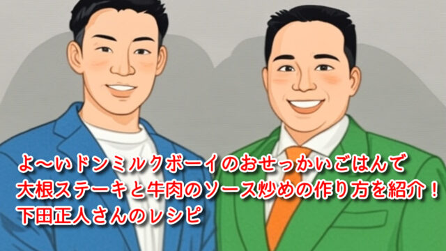 よ〜いドンミルクボーイのおせっかいごはんで大根ステーキと牛肉のソース炒めの作り方を紹介!下田正人さんのレシピ