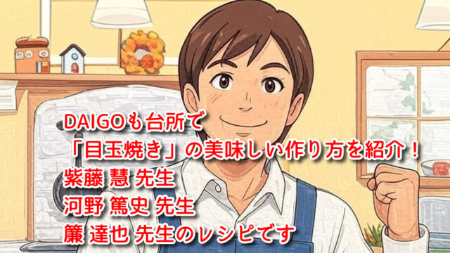 DAIGOも台所で「目玉焼き」の美味しい作り方を紹介!紫藤 慧 先生・河野 篤史 先生・簾 達也 先生のレシピです
