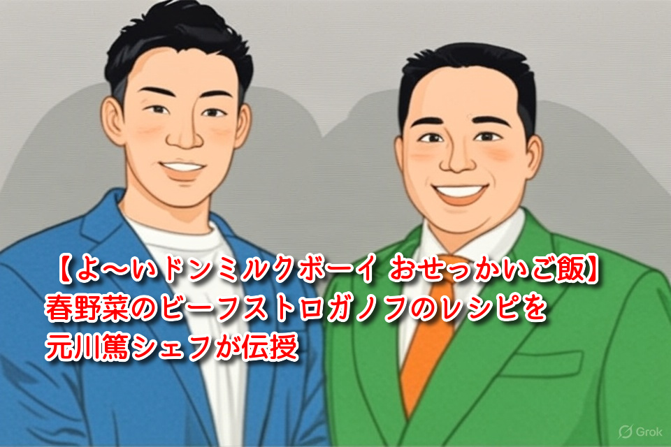 2026年4月13日放送によ〜いドンミルクボーイ おせっかいご飯で紹介された春野菜のビーフストロガノフの作り方についてまとめます!