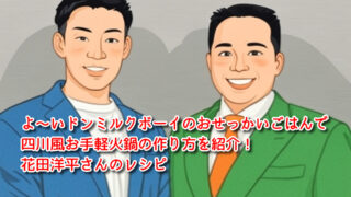 よ〜いドンミルクボーイのおせっかいごはんで四川風お手軽火鍋の作り方を紹介!花田洋平さんのレシピ2026年1月5日放送のよ〜いドンミルクボーイのおせっかいごはんで四川風お手軽火鍋の作り方について紹介されました! 教えてくれたの...