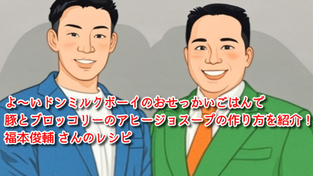 よ〜いドンミルクボーイのおせっかいごはんで豚とブロッコリーのアヒージョスープの作り方を紹介!福本俊輔 さんのレシピ