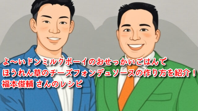 よ〜いドンミルクボーイのおせっかいごはんでほうれん草のチーズフォンデュソースの作り方を紹介!福本俊輔 さんのレシピ