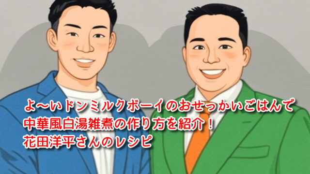 よ〜いドンミルクボーイのおせっかいごはんで中華風白湯雑煮の作り方を紹介!花田洋平さんのレシピ